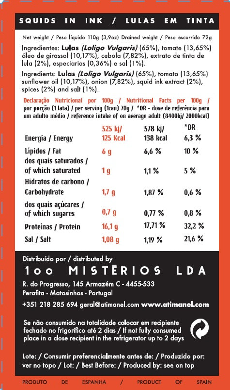 A lula em tinta ATI MANEL é feita com pedaços de lula em um molho de tinta super saboroso. O tomate, a cebola e os temperos fazem toda a diferença. É a lata perfeita para servir com arroz ou macarrão.