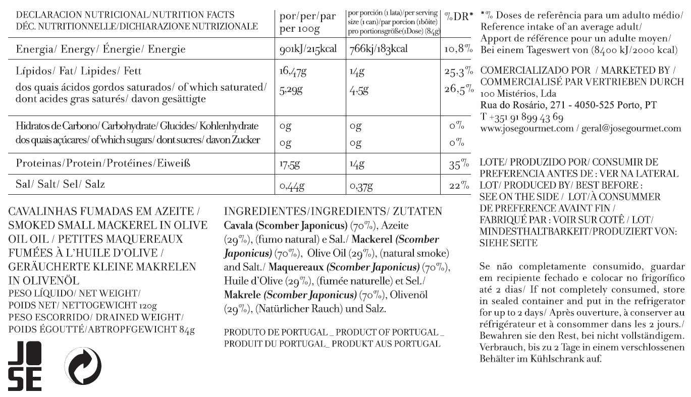 iletes finos de cavala do Atlântico fumada. Um peixe suculento, rico em proteínas e em gorduras mono e polinsaturadas, marinado em azeite virgem extra de alta qualidade.