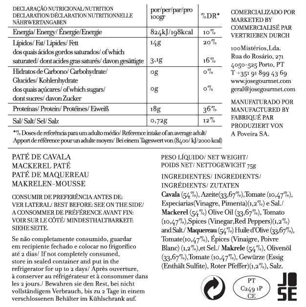 O Patê de Cavala JOSÉ GOURMET é delicioso. Este paté guarda propriedades que vão além do prazer do palato, constituindo uma fonte acrescida de nutrientes.